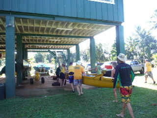 On Monday 1/12/15 we had the opportunity to paddle with the Hanalei Canoe Club which was founded in 1973. The HCC has a long history of winning championship outrigger races and has competed in Tahiti, Australia, Western Samoa, California, New York and Thailand. In 1993, HCC built its current clubhouse near Hanalei Beach after the previous one was destroyed by Hurricane Iniki the year before. Forty-two years since its founding, the Hanalei Canoe Club has approximately 200 members is thriving with four divisions including youth, women and men’s competitive teams, and the recreational division that paddles year-round. The Club’s recreation paddlers go out on Mondays and Fridays at 10:00 this time of year and head up the Hanalei River about 2.5 miles, just beyond the one-way bridge into town.